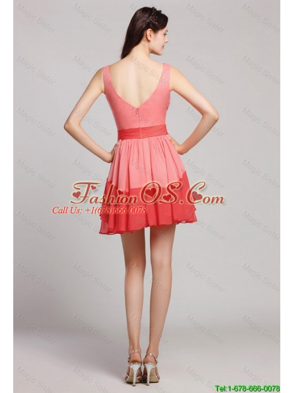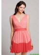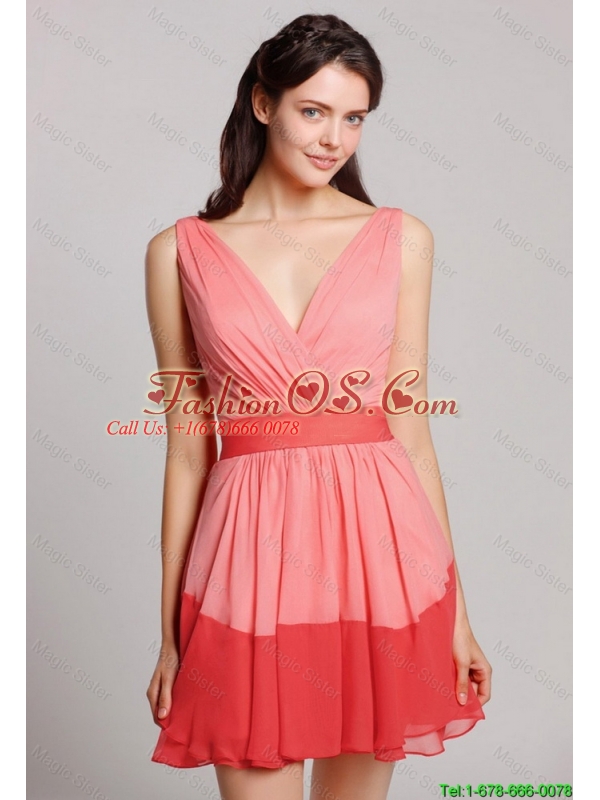 2015 New Style V Neck Belt and Ruched Prom Dresses in Multi Color