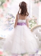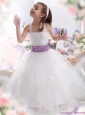 2015 New Style White Little Girl Pageant Dresses with Lilac Sash