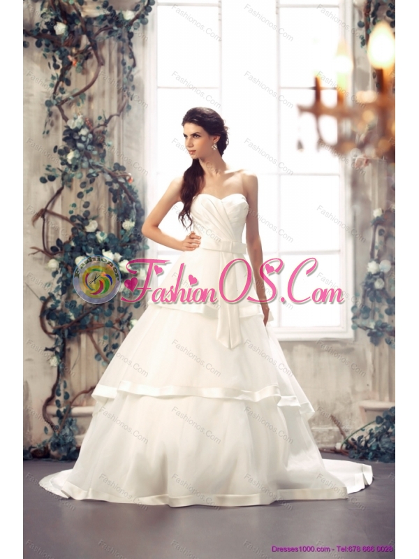 2015 New Sweetheart White Bridal Gowns with Chapel Train
