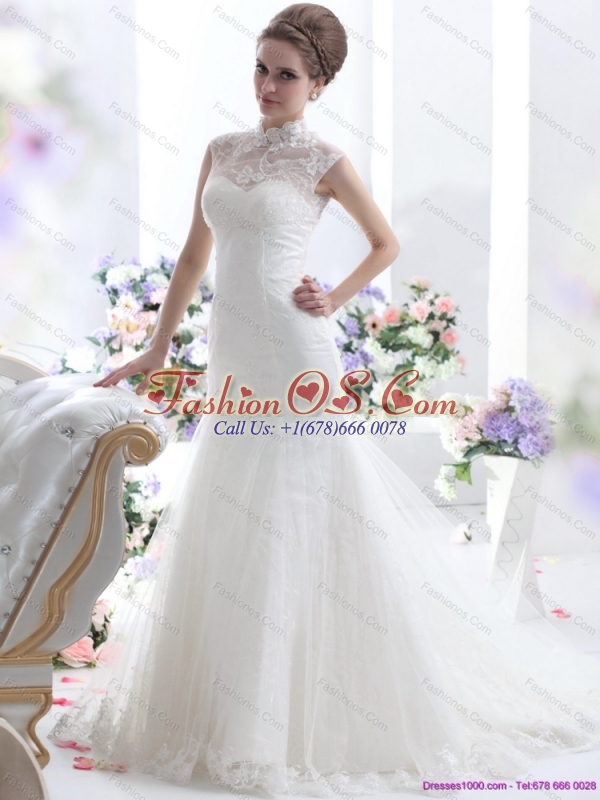 Home >  Wedding Dresses >  Fashionable Wedding Dresses > 2015 New White Laced Wedding Dresses with Brush Train