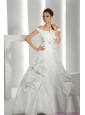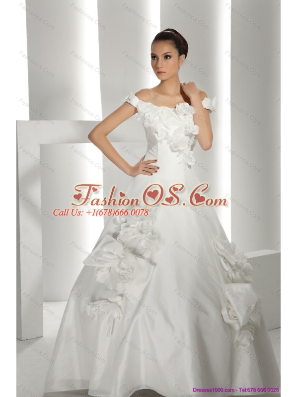 Home >  Wedding Dresses >  Fashionable Wedding Dresses > 2015 New White Off Shoulder Bridal Dresses with Cathedral Train and Hand Made Flowers