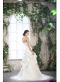 2015 New White Strapless Ruffled Wedding Dresses with Brush Train