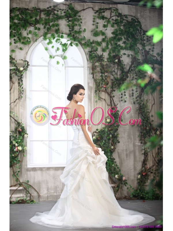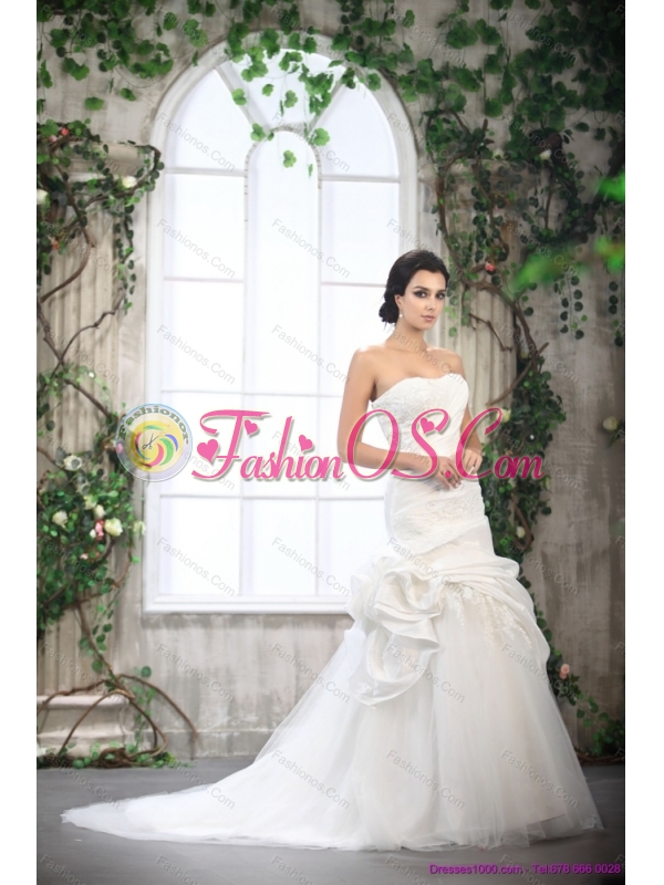 Home >  Wedding Dresses >  Fashionable Wedding Dresses > 2015 New White Strapless Ruffled Wedding Dresses with Brush Train