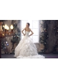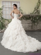 2015 New White Strapless Ruffled Wedding Dresses with Chapel Train and Beading