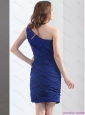 2015 One Shoulder Mini Length Christmas Party Dress with Beading and Ruching