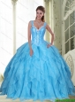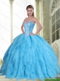 2015 Perfect Beading and Ruffles Baby Blue Sweet Sixteen Dresses with Sweetheart