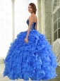 2015 Perfect Beading and Ruffles Strapless Sweet 16 Dresses in Blue