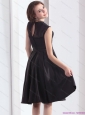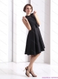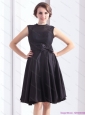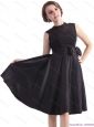2015 Perfect Black Knee Length Plus Size Prom Dress with Bowknot