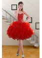 2015 Perfect Red Sweet 15 Dresses with Beading and Ruffles