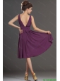 2015 Perfect V Neck Short Prom Dresses in Eggplant Purple