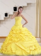 Home >  Quinceanera Dresses >  Discount Quinceanera Dresses > 2015 Perfect Yellow Strapless Brush Train Quinceanera Dresses with Beading