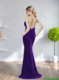 2015  Plus Size Mermaid Halter Top Beading Prom Dresses in Purple