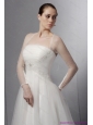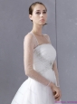 2015 Plus Size Strapless A Line Wedding Dress with Lace and Ruching