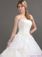 2015 Plus Size Strapless Lace Wedding Dress with Brush Train