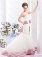 2015 Plus Size Strapless Mermaid Wedding Dress with Ruching and Hand Made Flowers