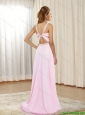 2015 Plus Size Sweep Train Baby Pink Prom Dress with Criss Cross