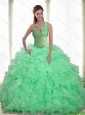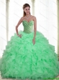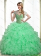 2015 Popular Beading and Ruffles Apple Green 15 Quinceanera Dresses with Sweetheart