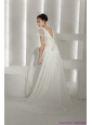 2015 Popular Brush Train White Beach Wedding Dresses with Ruching and Beading