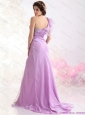 2015 Popular Empire One Shoulder Prom Dress with Beading and High Slit