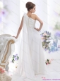 2015 Popular One Shoulder Beach Wedding Dress with Ruching and Hand Made Flowers