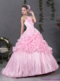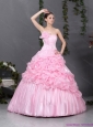 2015 Popular Pink Quinceanera Gowns with Hand Made Flowers and Ruffles