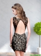 2015 Popular Scoop Backless Black Prom Dress with Lace