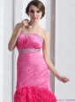 2015 Popular Strapless Prom Dress with Ruching and Beading