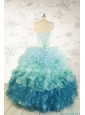 2015 Prefect Blue Quinceanera Dresses with Beading and Ruffles