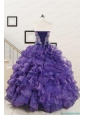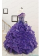 2015 Prefect Purple Sweet 15 Dresses with Embroidery and Ruffles