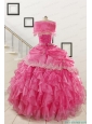 2015 Pretty Appliques and Ruffles Quinceanera Gowns in Hot Pink