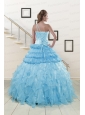 2015 Pretty Baby Blue Sweet 15 Dresses with Beading