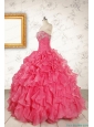 2015 Pretty Beading and Ruffles Hot Pink Quinceanera Dresses with Strapless