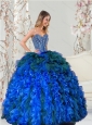 2015 Pretty Beading and Ruffles Quince Dresses in Royal Blue and Teal