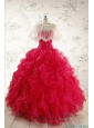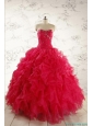 2015 Pretty Beading Red Quinceanera Dresses with Sweetheart