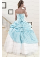 2015 Pretty Blue and White Quinceanera Dresses with Beading and Pick Ups