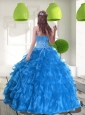 2015 Pretty Blue Quinceanera Dress with Ruffles and Beading