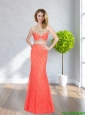 2015 Pretty Column Bateau Beading and Lace Bridesmaid Dresses in Baby Blue