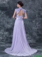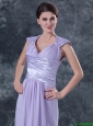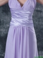 2015 Pretty Empire V Neck Prom Dresses with Beading in Lavender