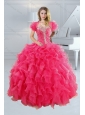 2015 Pretty Hot Pink Sweetheart Sweet 15 Dresses with Beading and Ruffles