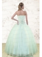 2015 Pretty Light Blue Sweet 15 Dresses with Beading