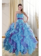 2015 Pretty Multi Color Dresses for Quince with Ruffles and Beading