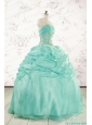 2015 Pretty Puffy Apple Green Sweet 16 Dresses with Beading