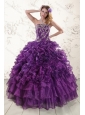2015 Pretty Purple Dresses for Quince with Appliques and Ruffles