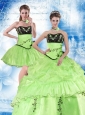 2015 Pretty Spring Green Strapless Quinceanera Dress with Embroidery and Pick Ups