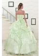 2015 Pretty Strapless Yellow Green Quinceanera Gowns with Beading