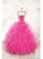 2015 Pretty Straps Hot Pink Quinceanera Dresses with Beading