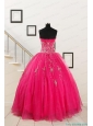 2015 Pretty Sweetheart Hot Pink Quinceanera Dresses with Beading