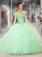 2015 Pretty Sweetheart Peach Quinceanera Dresses with Beading and Ruffles