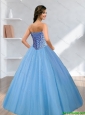 2015 Pretty Sweetheart Tulle Beading Quinceanera Dresses in Blue