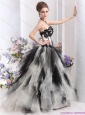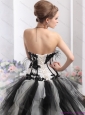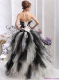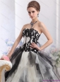 2015 Pretty White and Black Strapless Quinceanera Dresses with Appliques